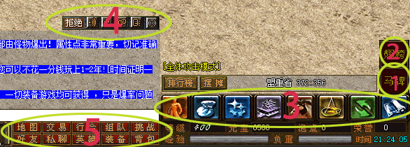 5.依此为:小地图,交易,行会管理,组队管理,挑战管理,私聊管理,好友管理,召唤英雄,英雄装备,英雄背包 |